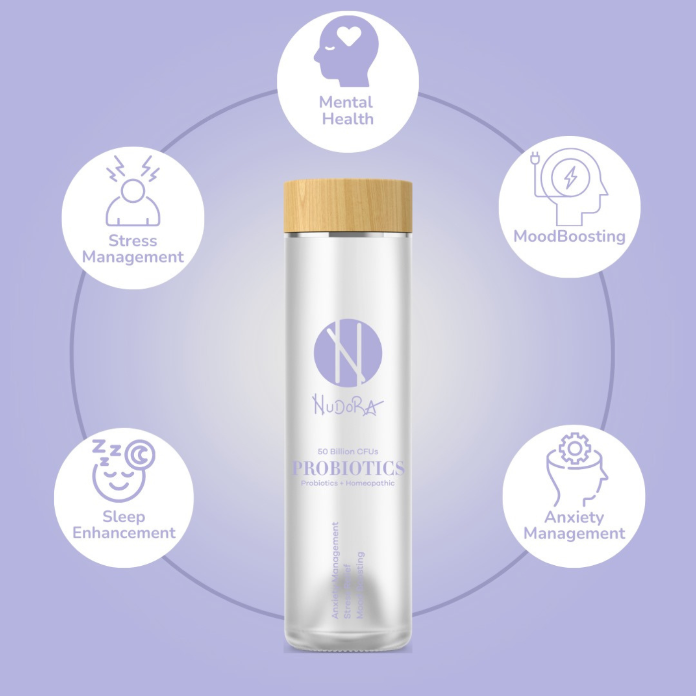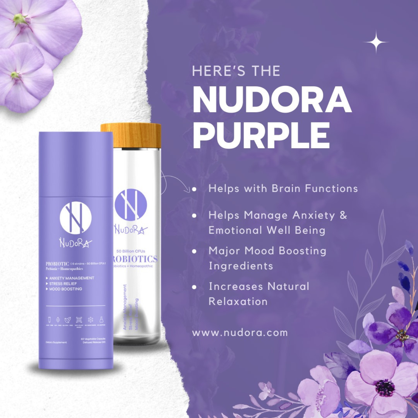 Si te sientes abrumado por el estrés, tienes problemas para dormir o buscas mejorar tu claridad mental, Nudora Purple está aquí para ayudarte. Más que un simple probiótico, Nudora Purple es tu fórmula todo en uno para: