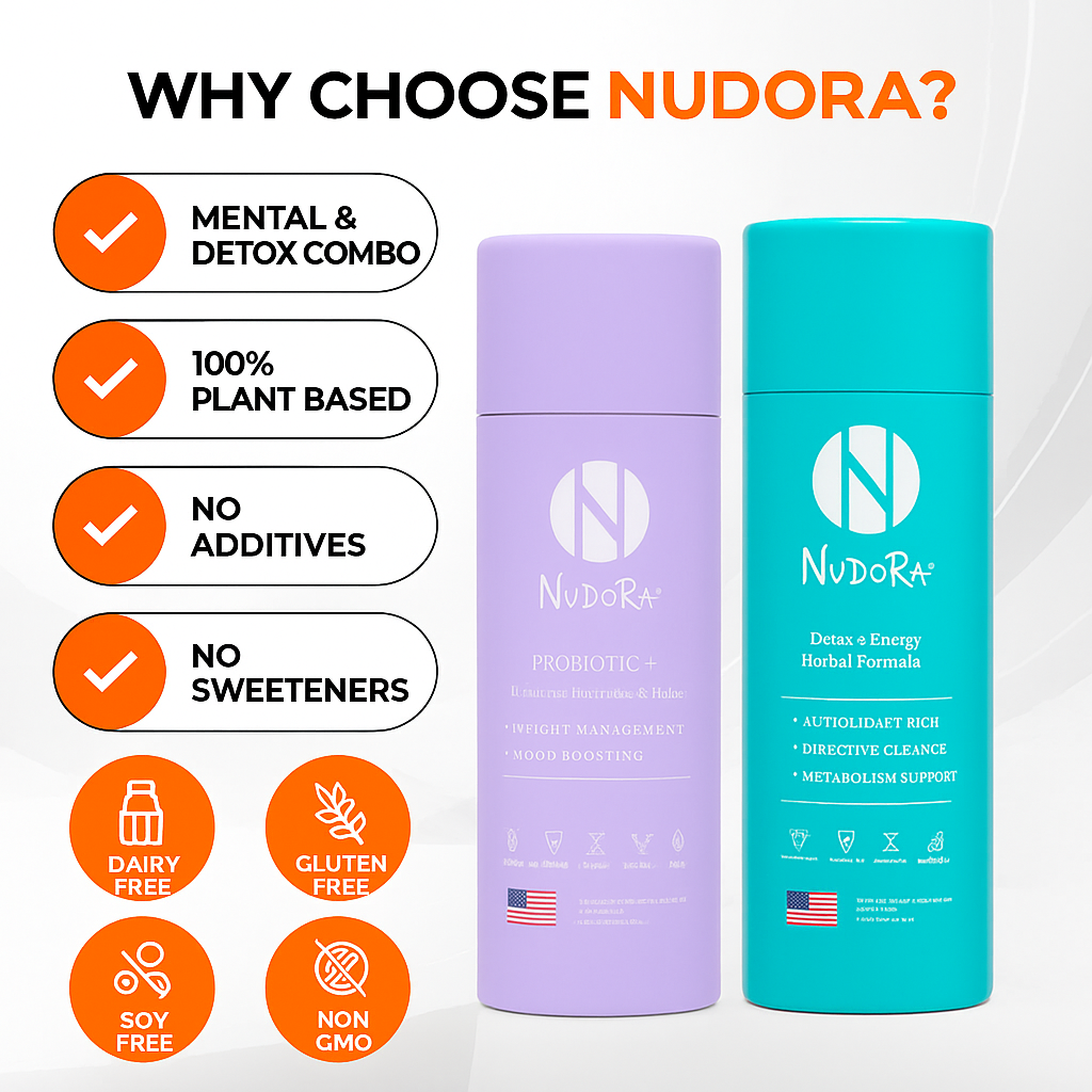 ¿Qué tal si pudieras controlar los antojos, eliminar la grasa abdominal persistente y sentirte con energía, todo con una sola cápsula? Los probióticos de Nudora Orange nutren tu intestino, mientras que el jengibre orgánico acelera tu metabolismo y el té verde te da energía. Además, alivia los síntomas del SOP, calma la inflamación e incluso limpia tu piel. Porque cuando tu intestino está feliz, todo tu ser brilla.