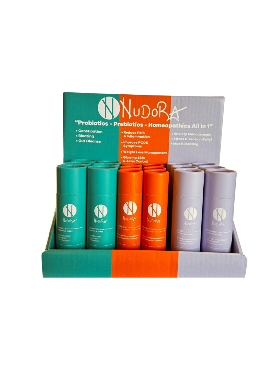 30 Nudora "NUEVO" Naranja : Apoya naturalmente la producción de GLP-1 y frena el apetito, apoya el control de peso saludable, apoya la energía y el metabolismo, la respuesta inflamatoria saludable y promueve la salud de la piel con 10 cepas probióticas (50 mil millones de UFC), prebióticos, dihidroberberina (DHB), jengibre orgánico y té verde orgánico .